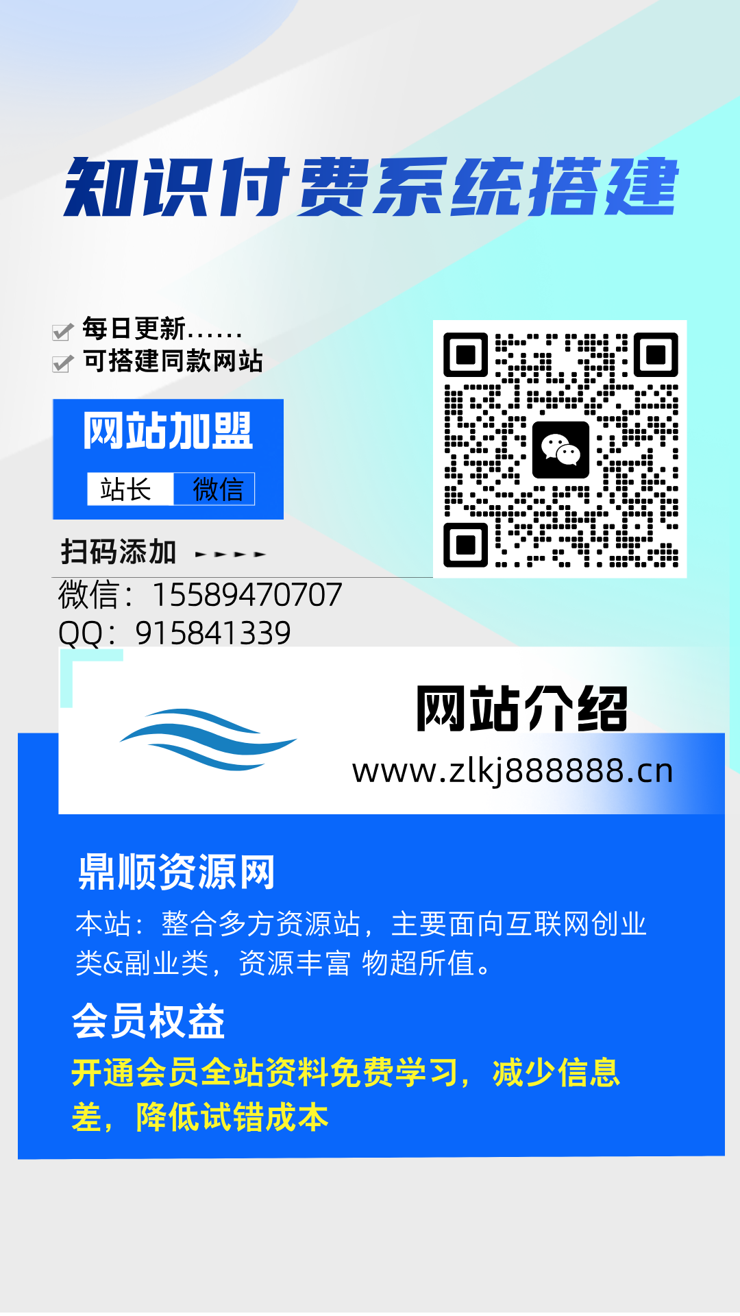 加盟XXX网创,加盟搭建同款知识付费资源网站,实现长期稳定被动收入~